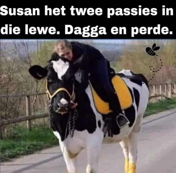 “Oh, you’re like the joke of the girl on the cow,” I say.